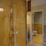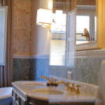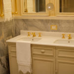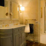 I Bagni: suggestivi e luminosi grazie alle ampie vetrate di cristallo, i bagni sono frutto di un lavoro artigianale, sensibile ad unire al fascino antico i comfort più moderni, tutti in marmo italiano.